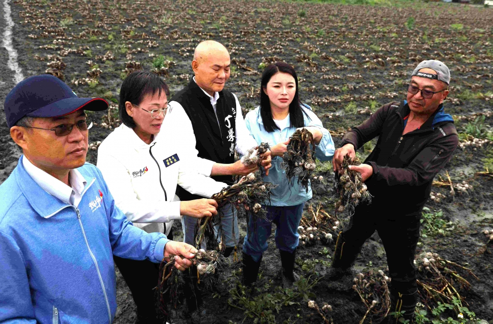 立委張嘉郡說,蒜頭受氣候異常及連日降雨影響,出現失收甚至腐爛情形,今天縣府、農糧署、改良場及鄉公所迅速啟動四方會勘,災情確實嚴重,建議儘速啟動每公頃9萬5,000元現金救助,穩定農民信心。