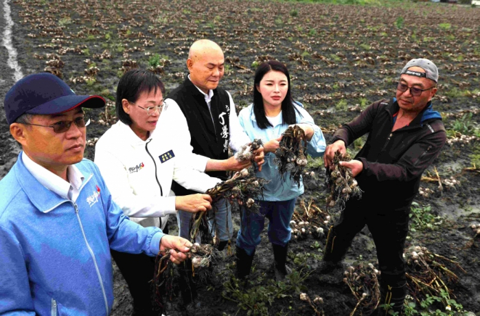 副縣長謝淑亞表示,連日降雨導致蒜田積水,尚未採收的蒜球長時間浸泡在土中,多數僅能作為加工用蒜,農民損失慘重。