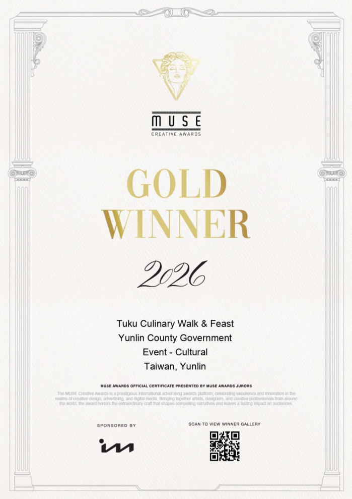 此外,在縣政府積極策劃與推動下,「土庫宴」更展現亮眼成果,今年一舉榮獲國際設計大獎MUSE Design Awards「文化活動類」及「節慶嘉年華類」雙金獎!
