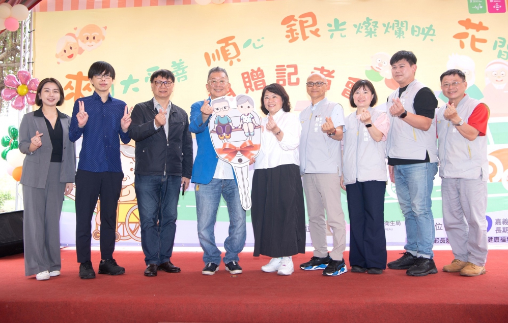 【雲嘉特派員陳信利/嘉義市報導】嘉義市政府今天(9日)舉辦「來自大愛善順心‧銀光燦爛映花間」長照交通車捐贈儀式,市長黃敏惠感謝市政顧問、順億關係企業總裁、義雲會創會會長林文村,以父親林來順及母親林邱銀花名義捐贈長照交通車給嘉義市長照中心。