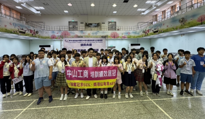 【記者陳信銘/高雄報導】中山工商培訓的國中技藝教育學生參加「114學年度高雄市國中技藝教育學生技藝競賽」,橫掃11個主題冠軍,中餐廚藝製作組更是囊括1至11名佳績,技驚全場。李昱平校長表示,該校培訓20個主題,奪冠率逾5成,獎項佔有率達4成8,整體表現傲視群倫。