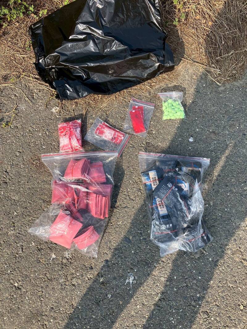 刑大押陳嫌找到該座標地點,翻開草叢找到埋包毒品處,挖出一黑色垃圾袋,內藏有大批毒品咖啡包,警方擴大追查,除連,陳二嫌外,再查獲蘇男(24歲)、黃女(21歲)、趙女(29歲)等共犯,5嫌全數落網,全案訊後今依違反毒品危害防制條例罪嫌移送臺灣高雄地方檢察署偵辦。