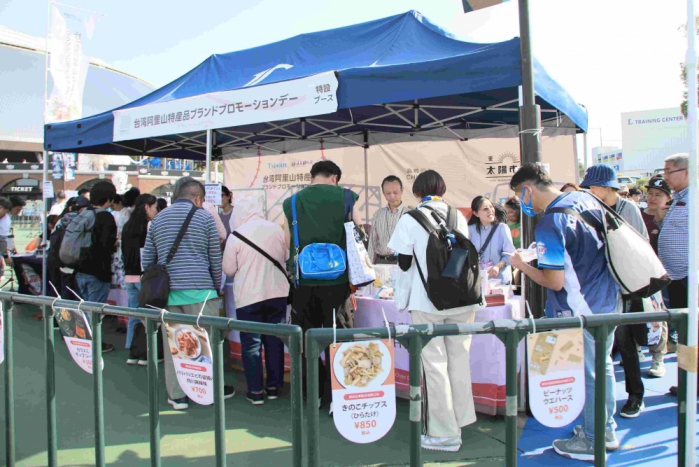 嘉義縣政府特別於西武球場站出入口設置「嘉義優鮮」展售攤位,現場販售13項精選產品並提供試吃體驗。