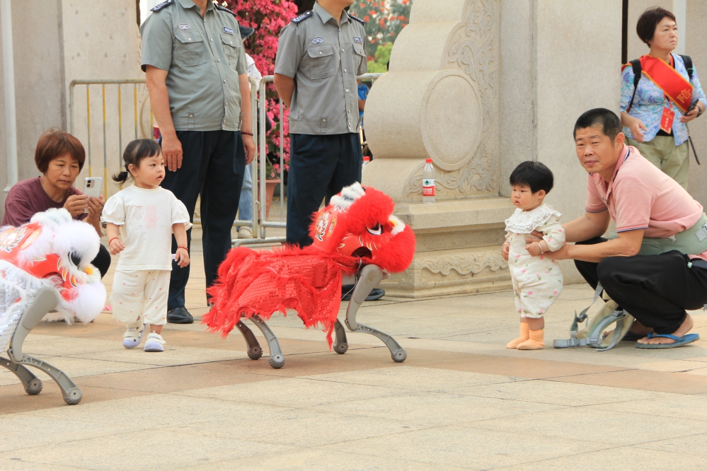 今年保生文化節以「科技連兩岸、慈濟共傳承」為主題,現場有機器狗套上醒獅裝表演,開幕式舞台出現四具機器人跟著舞群跳舞;場地周邊結合保生大帝醫藥專業,教導自製薄荷膏、AI科技診療等電腦器械應用。
