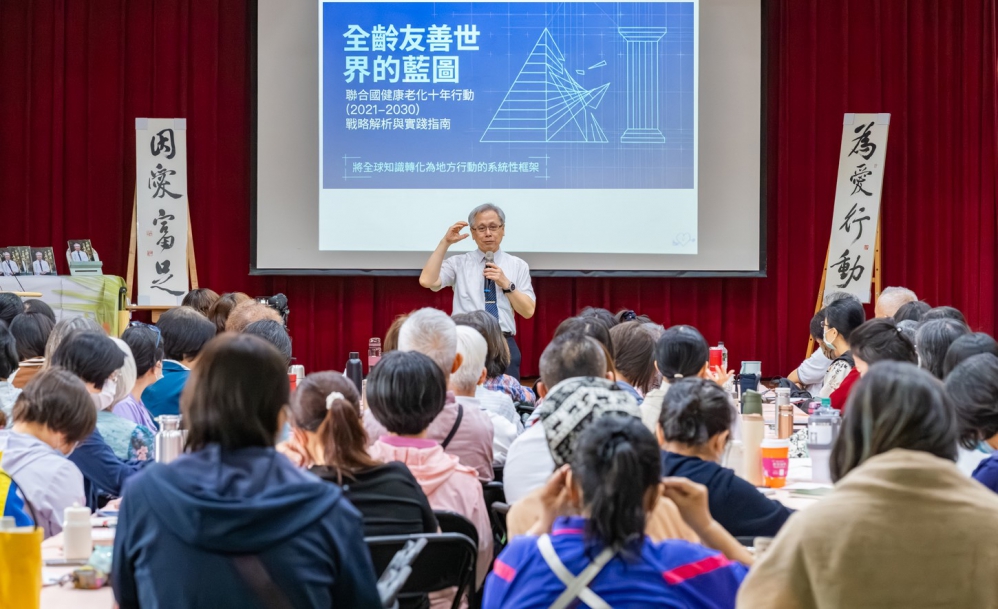 講座邀國健署前署長王英偉教授主講「樂活善終」,探討如何在社區建立支持網絡,陪民眾走過人生最後一段旅程。前署親切幽默風格,讓現場氣氛備感溫暖。