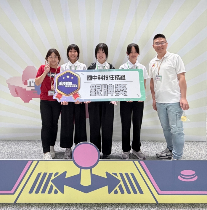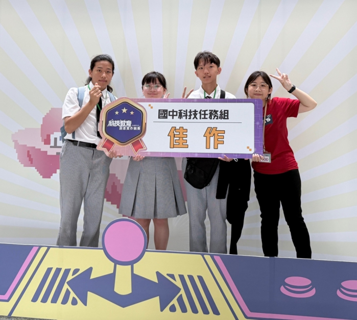 國中部陳育蒼主任說,科技教育創意實作競賽是由教育部國民及學前教育署主辦,國立臺灣師範大學、高雄師範大學、科學工藝博物館共同承辦,參賽團隊在楊鎮澤主任、諶瑀涵老師指導下,憑藉豐富創意與扎實訓練脫穎而出,難能可貴。