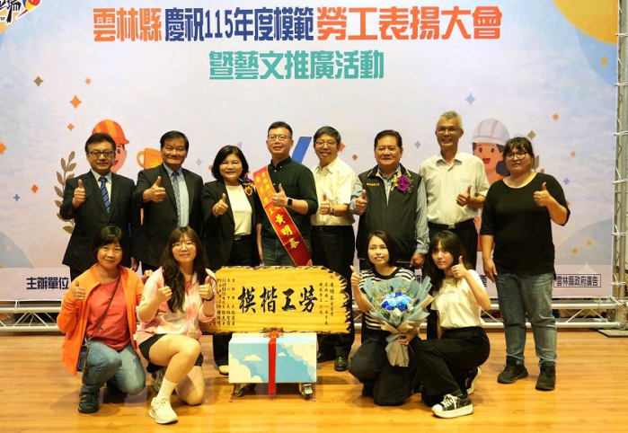 【記者陳信利/雲林報導】五一勞動節將至,雲林縣政府今天(21日)在斗六市公所斗六廳舉辦115年度模範勞工表揚大會,由縣長張麗善頒獎,表揚新聞工會雷琇雯、電器工會蘇智勇等156位來自各行各業模範勞工。