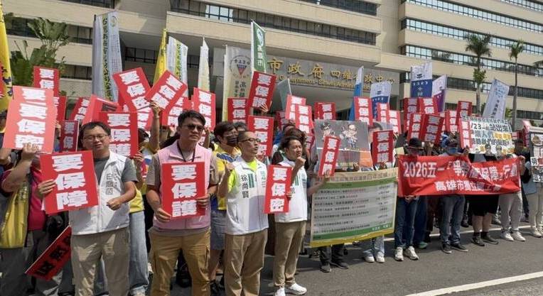 【記者陳信銘/高雄報導】高市獨立總工會今(23)日聯合相關教育、醫療、交通運輸等工會人員前往高市府前集結,控勞工局「執法最寬鬆、裁罰最消極」,舉牌要求保障、保密、保護。