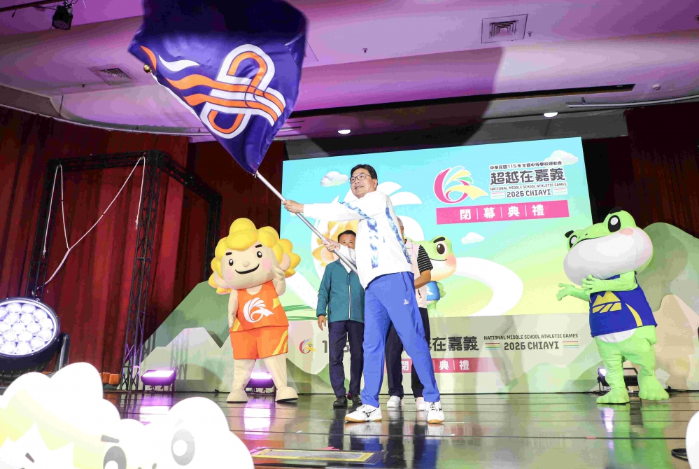 【雲嘉特派員陳信利/嘉義縣報導】115年全國中等學校運動會今天(23日)下午舉行閉幕典禮,運動部次長黃啟煌宣布全中運正式落幕,將會旗從嘉義縣長翁章梁手中交接給下屆主辦的新北市政府副市長劉和然,邀請大家參加116年全中運「新之所向」!