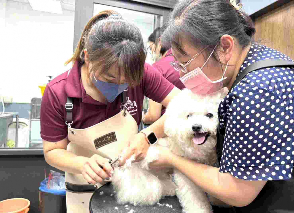 她分享說,過去總擔心自己沒有相關背景而害怕無法勝任,但在專業美容師的指導下,從最基礎的梳理與安撫毛孩開始,逐漸建立信心,也更清楚了解這份工作的實際內容與所需技能。
