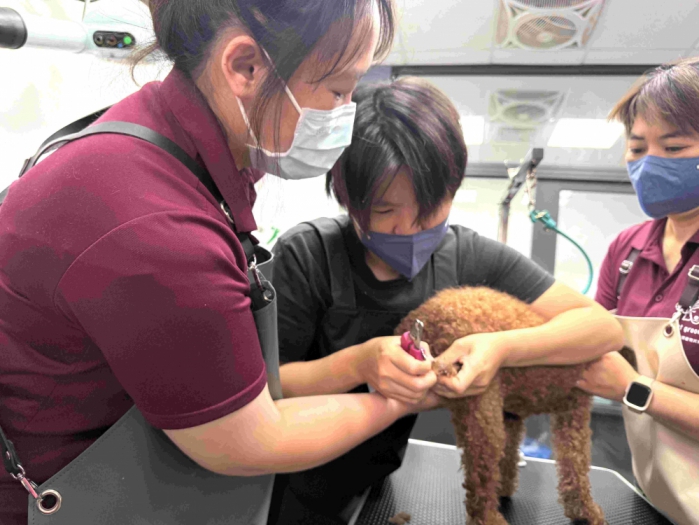 毛媽媽們從認識美容工具、學習基礎梳理技巧,到觀摩專業美容師示範清潔、修剪與安撫技巧,並透過實作一步步走入寵物美容師的日常。