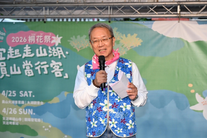 【記者林欣怡/宜蘭報導】春暖花開、桐雪紛飛,2026宜蘭桐花祭今(25)日在員山鄉大湖普恩廟前廣場熱鬧登場。今年活動以「宜起走山湖・員山當行客」為主題,結合桐花健行、藝文展演、好客市集、數位集章及客家美食體驗,邀請鄉親與遊客走入宜蘭客庄,在春日山林間賞桐、健行、聽音樂、逛市集,一同感受自然景觀與客家文化交織而成的迷人風景。