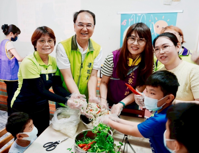 隨後轉往林園魔法屋愛鄉協會教室進行在地食材體驗,由洋蔥料理達人帶領學員運用林園特產洋蔥進行涼拌料理DIY,並設置「古早味小食堂」分享林園在地小吃與傳統風味料理。