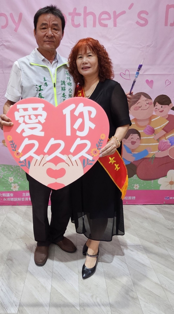 今年模範母親有36人,其中來自五福村的江楊寶珠女士,獲彰化縣模範母親殊榮,她的熱心公益,積極投入地方事務,夫婿江春男為現任永靖鄉調解會主席和五福社區理事長,夫妻長年關心社區發展,攜手為地方和社區貢獻心力,展現守望相助、回饋社會情懷,堪稱模範母親典範。