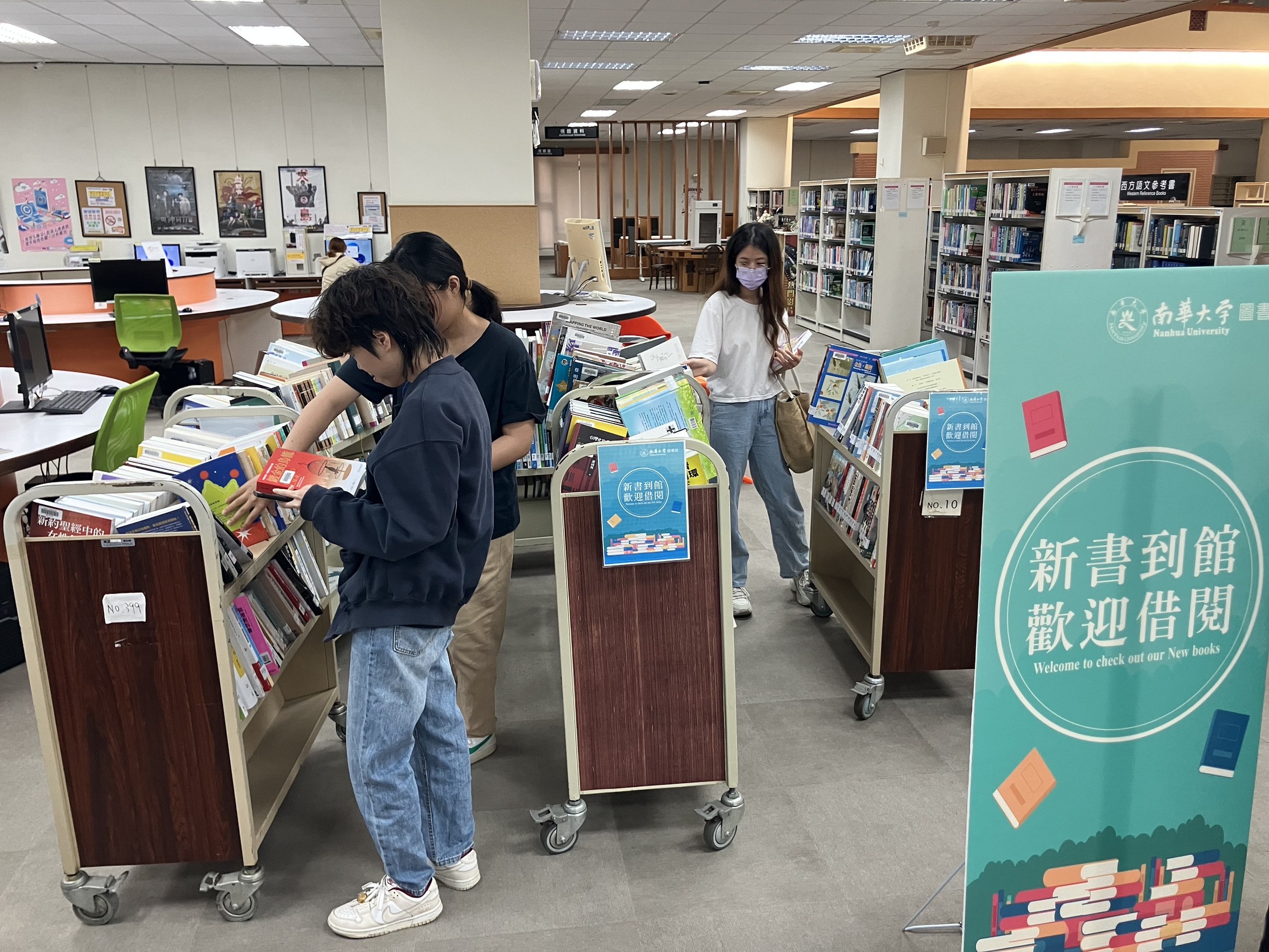 南華大學響應世界閱讀日辦理系列創意活動推廣閱讀。學生踴躍借書共襄盛舉。(圖/南華大學提供)